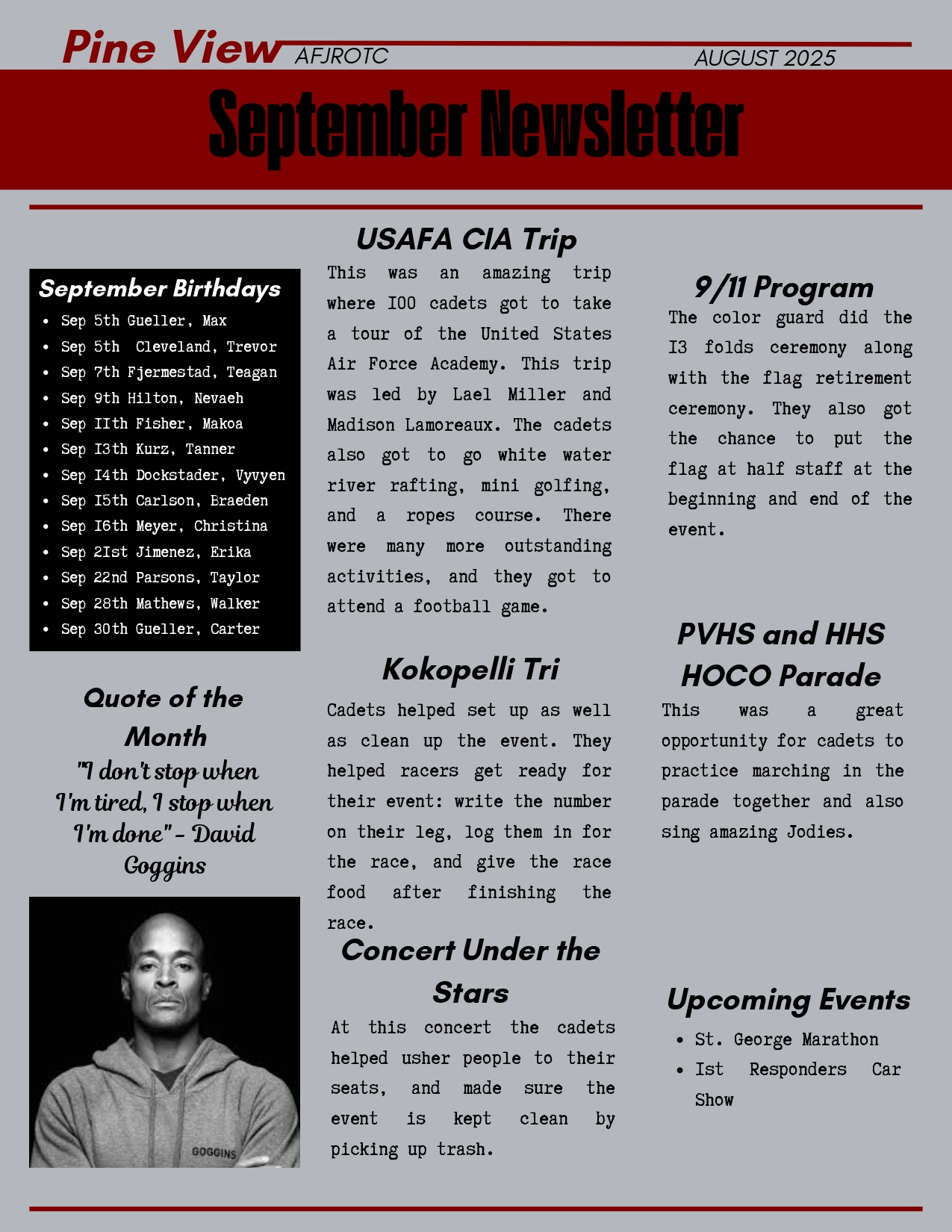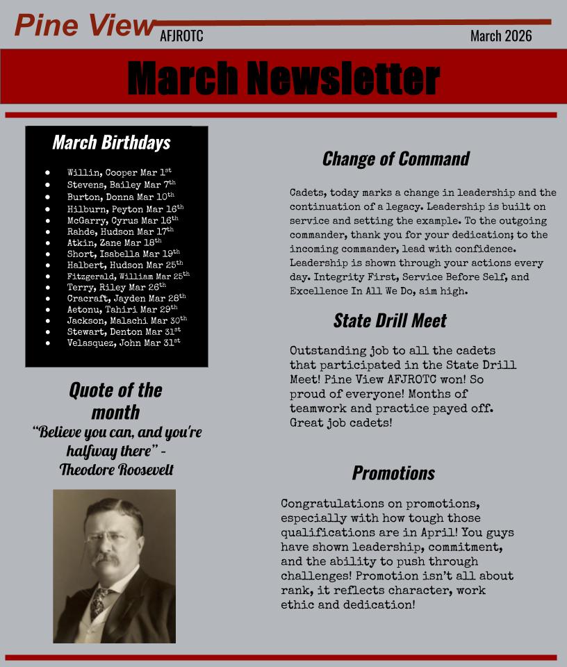Uniform Inspections: Tue & Wed based on Cadet’s A/B-Day Schedule